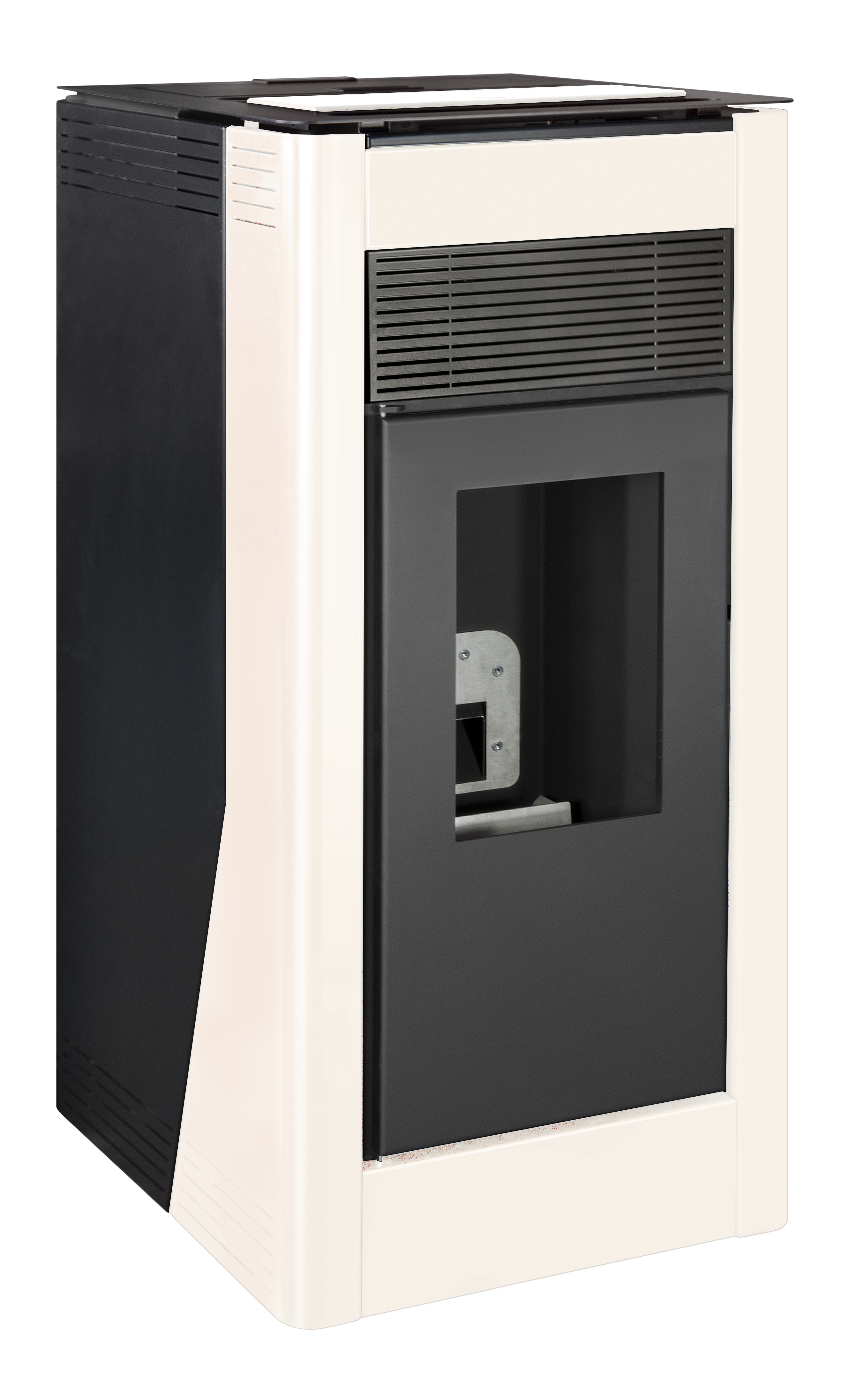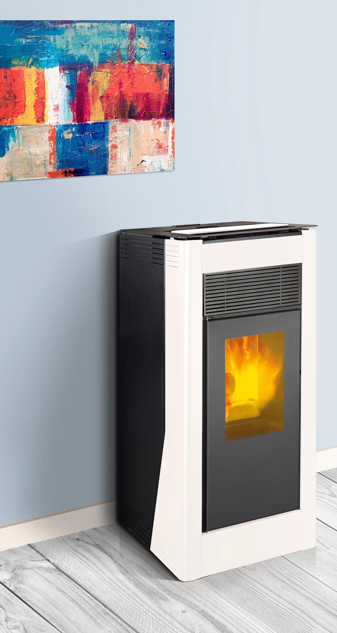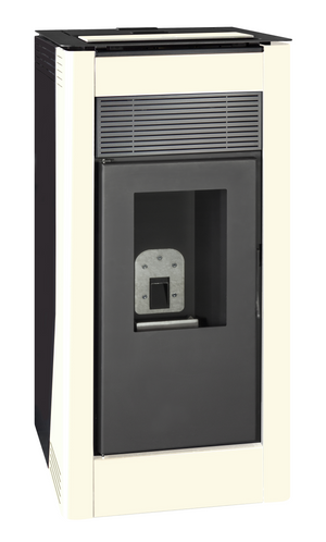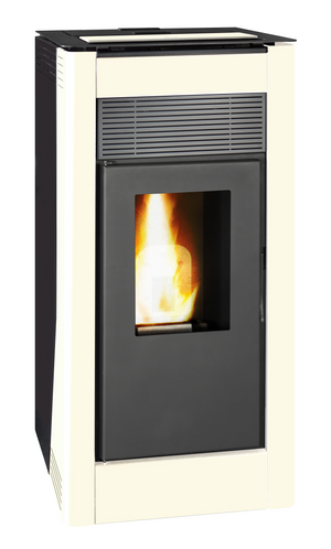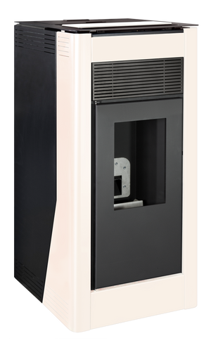 Salamandra a pellets hidro de 24KW de aço em cor branco. Superfície recomendada é até 140 m².